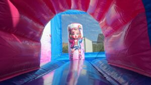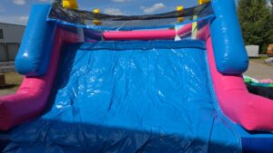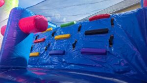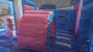 schöne farbenfrohe Hüpfburg mit großer Rutsche und Tobelteil