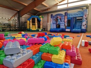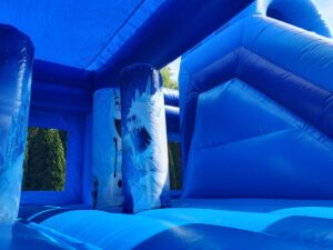 Schöne neue Multi Hüpfburg mit Tobe- und Rutschteil in den Maßen 5 x 5m.