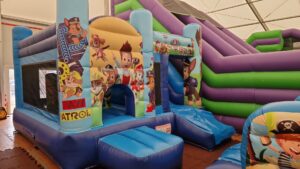 Die Hüpfburgen werden mit Gebläse bereitgestellt. Ebenso Einweisung für den Auf- und Abbau